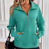 Autumn Winter Women's Lapel Zip Pullover Long Sleeve Casual Pocket Solid Hoodie Top for Women