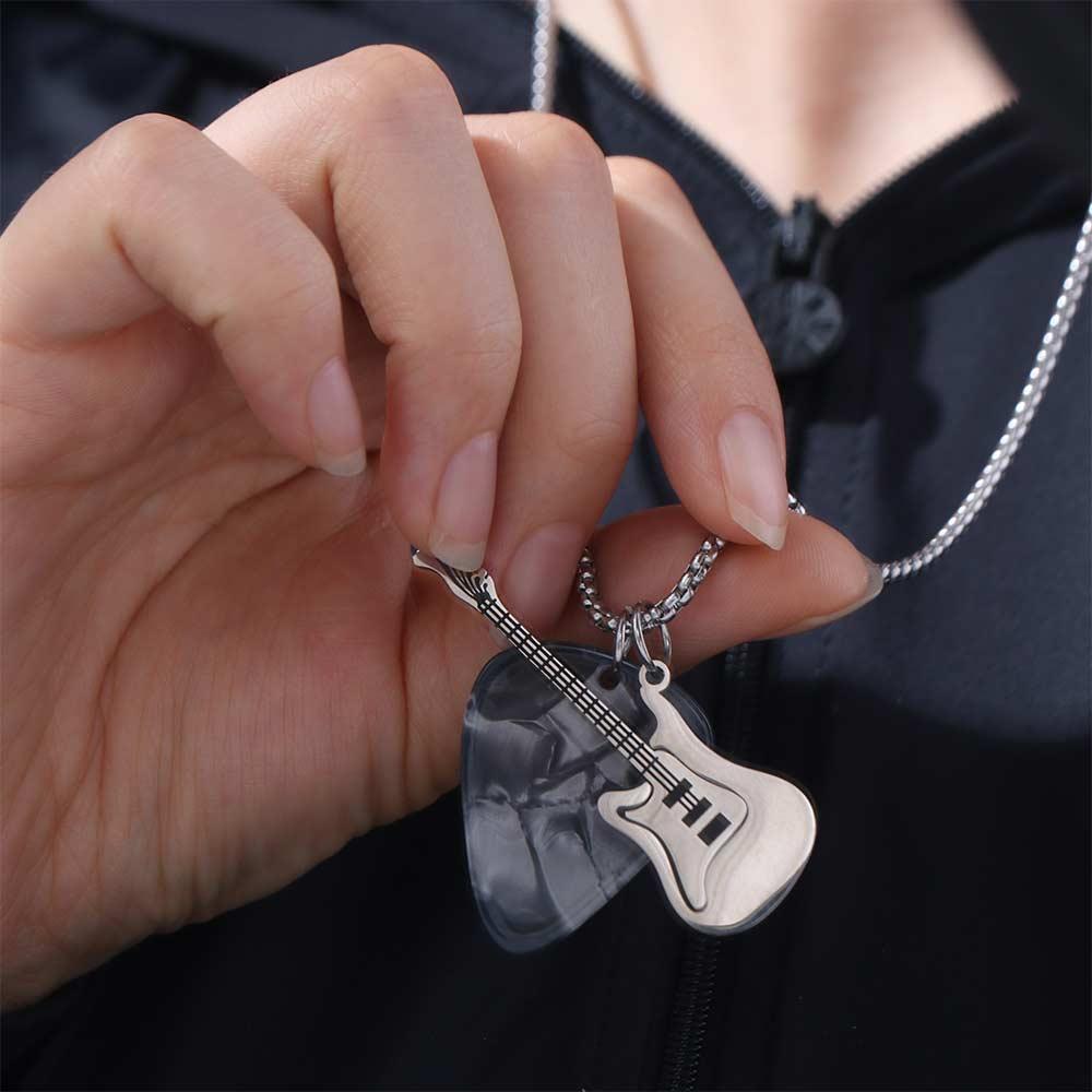 Hip-hop Guitar Pick Pendant Necklace Punk Electric Guitar Sweater Chain Guitar Chain Choker Boys