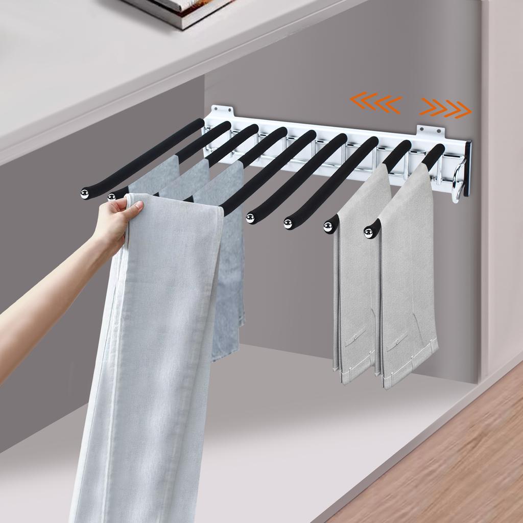 Bymaocar 9 Arms Pull Out Trouser Rack Closet Pants Clothes Hangers Storage Holder Space Saving Silent with 3-section Rail & Base