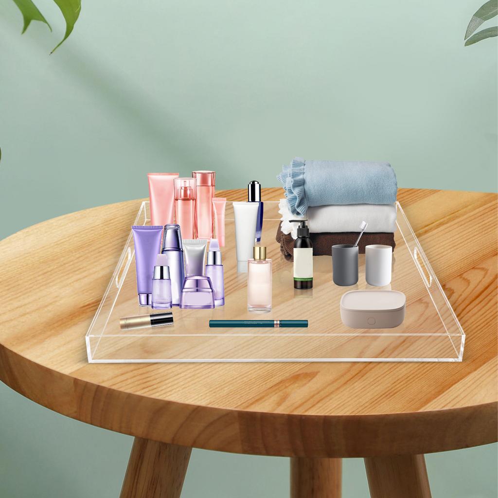 Clear Acrylic Serving Tray with Handles, 23.92x23.92Inch Oversize Spill Proof Decorative Tray, Multipurpose Countertop Organizer