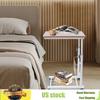 Bymaocar Oak Colored Moving Edge White Table Rack Adjustable Side Table W/ Removable&Lockable Universal Wheels Home/dormitories