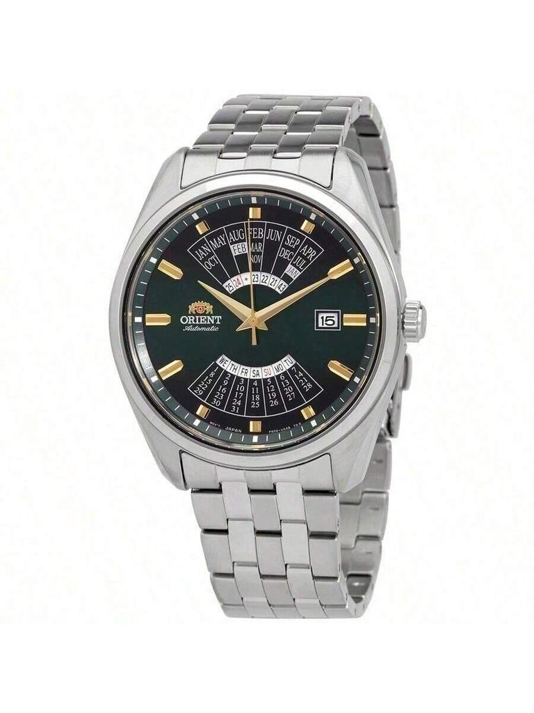Men's Watch Fully Automatic Mechanical Watch Perpetual Calendar Large Dial Steel Belt Waterproof Casual Watch Steel Belt Green Dial RA-BA0002E10B