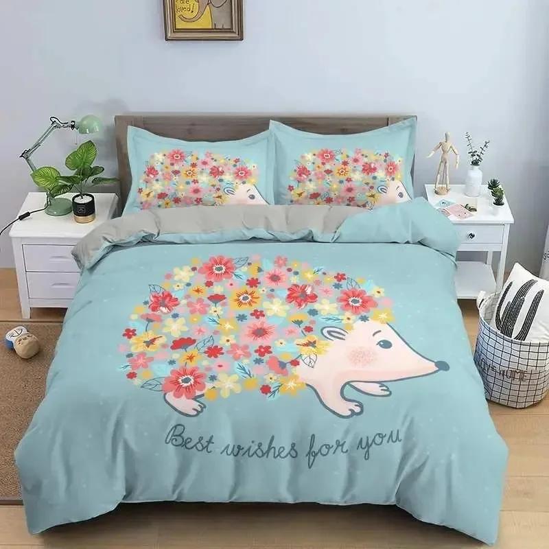 Luxury New 3D Print Cute Hedgehog Bedding Set Boys Girls Twin Queen Size Duvet Cover Pillowcase Bed Fashion Home Textileextile