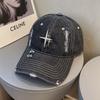 Street Retro Vintage Vintage Cowboy Hole Baseball Cap with Star Rhinestone Pattern Duckbill Cap, Highlighting Small Face
