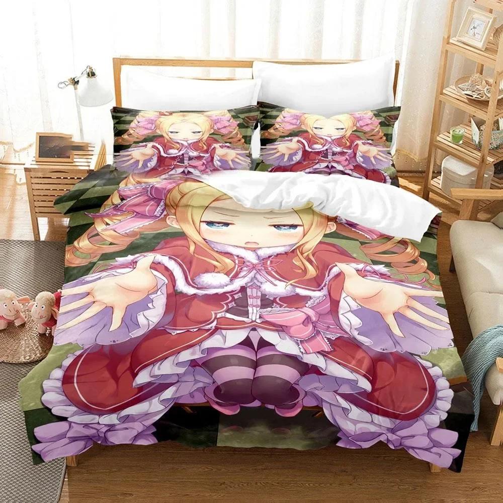 3D Print Anime Re Zero Rem Ram Emilia Comfortable Duvet Quilt Cover Pillowcase Bedding Set Bedroom Decoration Home Textile