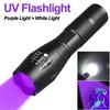 USB Rechargeable Flashlight with Dual Light Sources, White Light 395nm Ultraviolet Light Outdoor Camping Fishing Torch Lantern