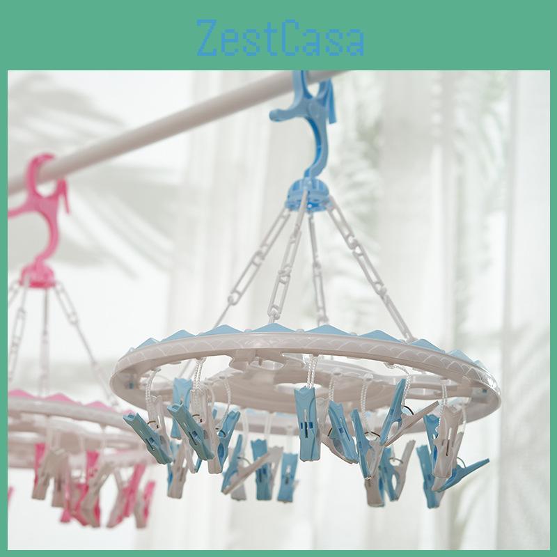 Durable Plastic Round Clothes Drying Rack With 20 Clips For Underwear And Socks