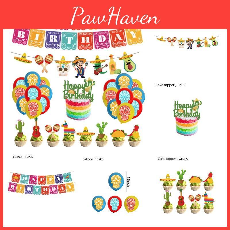 Ghostly Halloween Party Decorations For Kids Spooky Mexican-themed Set With Cake Toppers Balloons And Banners