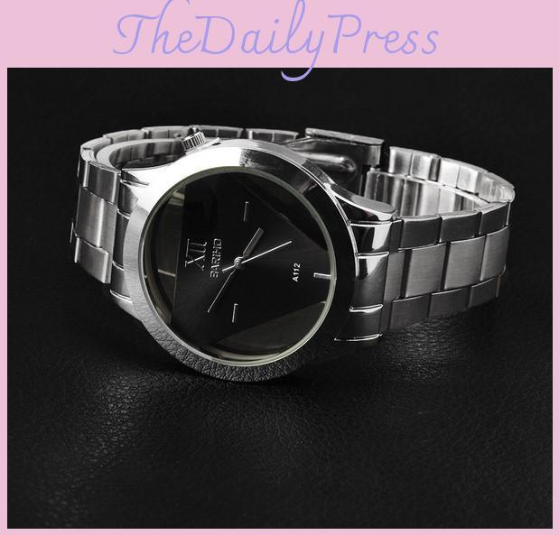 Unique Stainless Steel Triangle Skeleton Watch Stylish Alloy Case And Glass Mirror