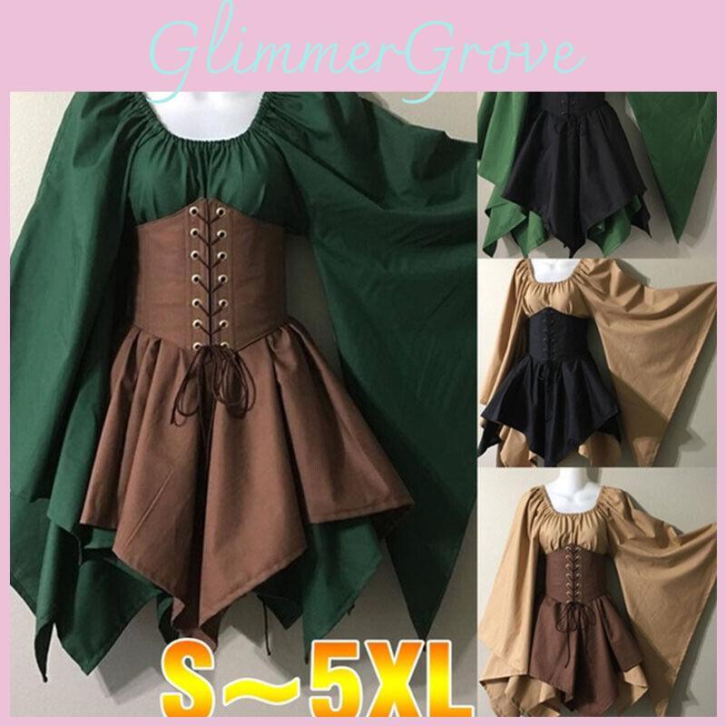 Enchanting Medieval Women Woodland Elf Fairy Dress Corset Set For Halloween Magic