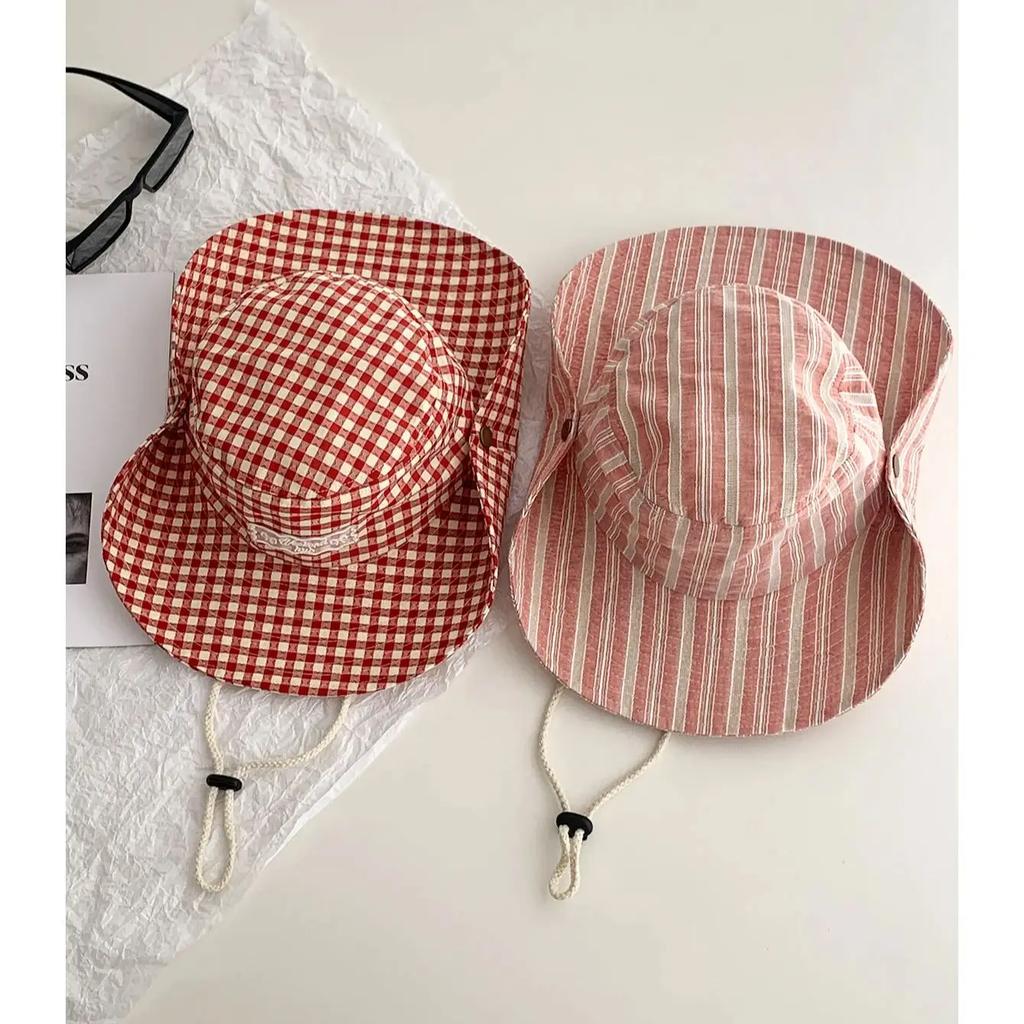 Stripesd Fisherman Hat Women's Summer New Large Brim Lanyard Sun Hat Outdoor Camping Style Hiking Mountaineering Hat Bucket Hat
