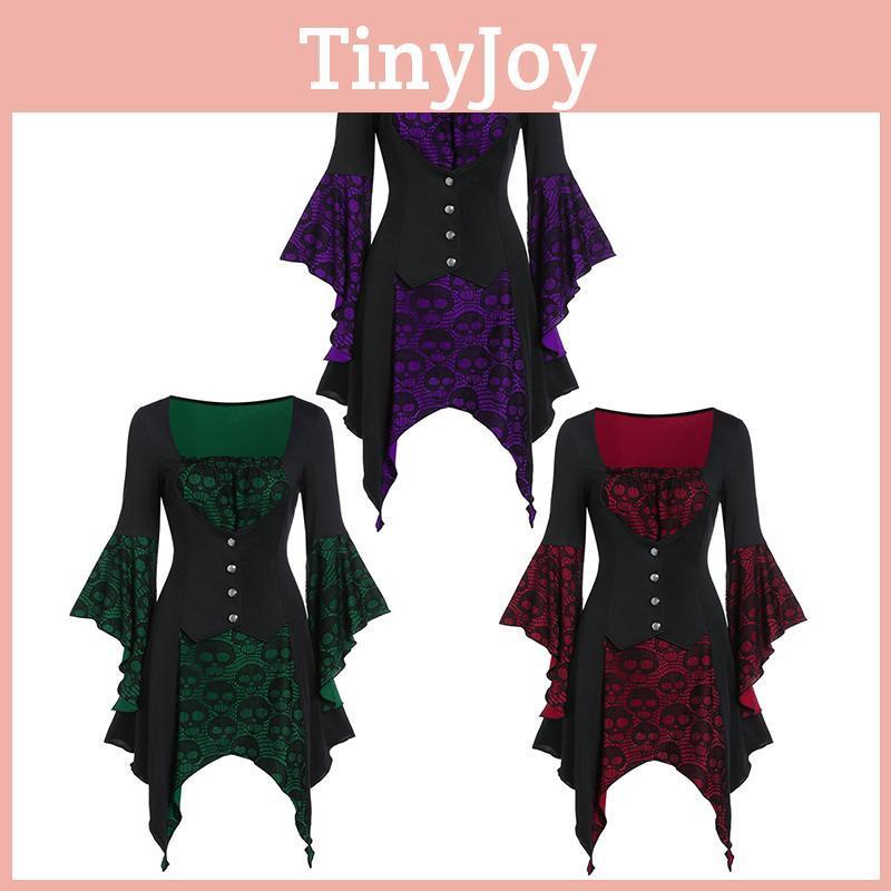 Women's Vintage Skull Head Medieval Gothic Witch Cosplay Costume Dress For Halloween Party