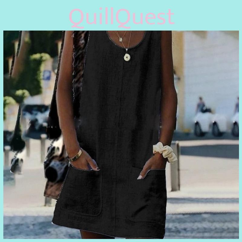 Women Sexy V Neck Sleeveless Pocket Blouse ShirtEvening Party Beach Mini Dress