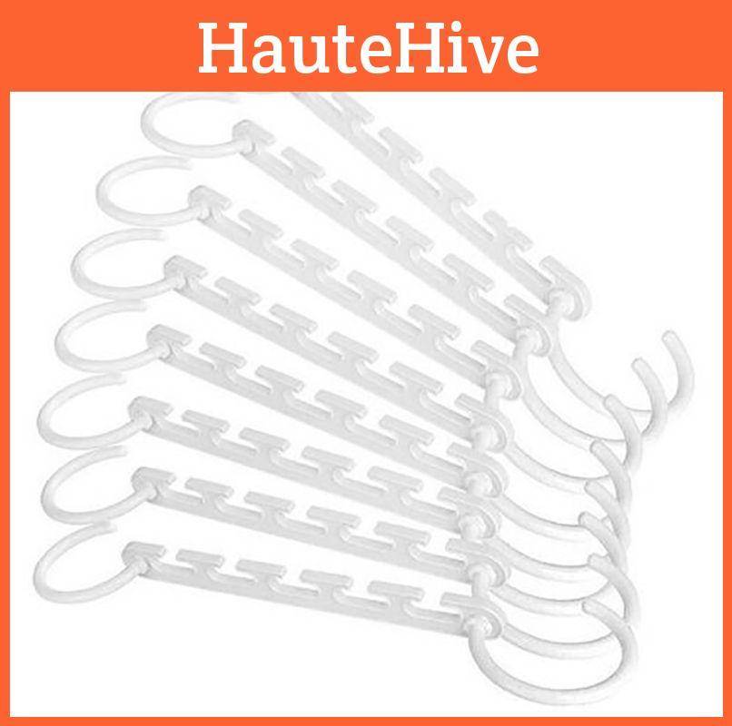 8PCS CLOTHES HANGERS: Each hanger organizer with ideal dimensions 9.1" Long can hold up to 5 pieces of clothing (up to 5Kg / 11lb) horizontally, or can hang clothes vertically. Made of durable plastic for long life, never have to worry about rusting. Space saver hangers have no burrs or flash which can protect you value clothes.