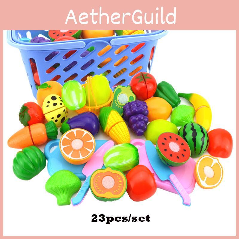 Colorful Kitchen Play Toy Set With Premium Quality Fruit And Vegetable Cutting Pieces