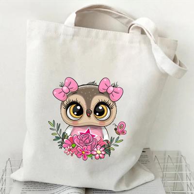 Cartoon Owl Hand-painted Print Canvas Bags Ladies Shopping Bags Owl Floral Tote Books Bag for Girls Fashion Handbags