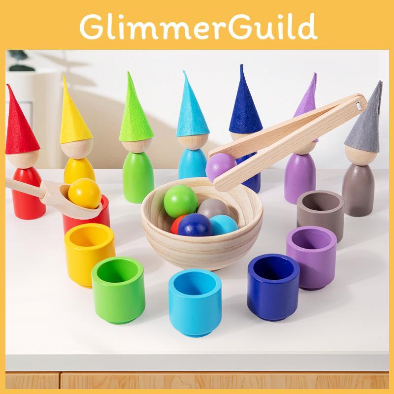 Wooden Montessori Toy Color Sorting Cup Game For Preschool Learning And Development