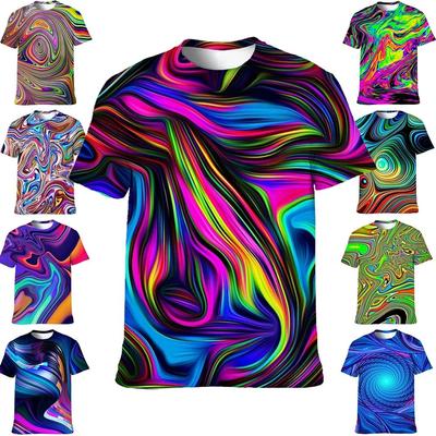 Colorful T-Shirts for Men 3D Printed Neon Abstract Tee Shirt Short Sleeve