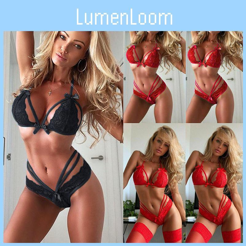 Elegant Women Sexy Lingerie Nightwear Dress Babydoll G-string Lace Bra Set For Romantic Evenings