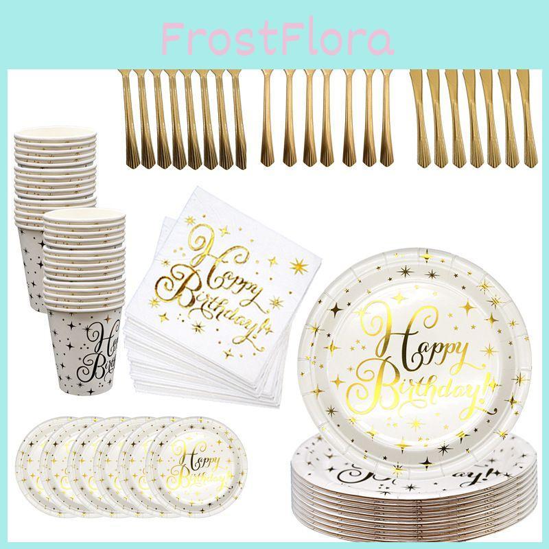 Cheerful Gold Polka Dot Stamping Happy Birthday Party Decor Supplies Disposable Tableware Collection