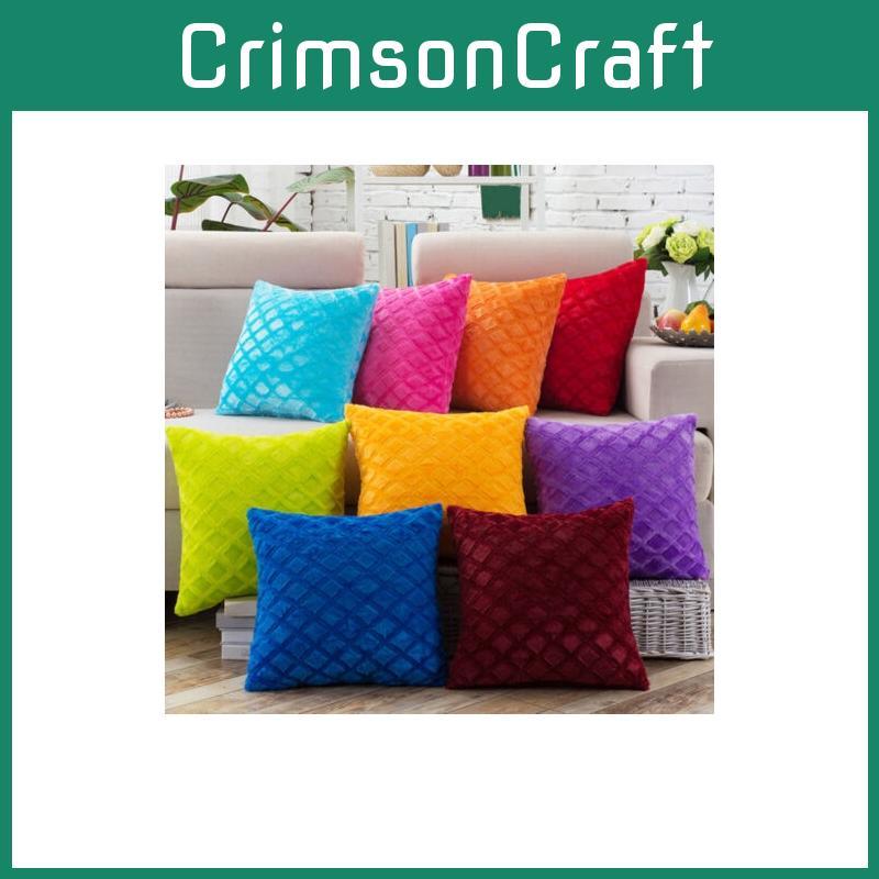 Luxurious Soft Velvet Cushion Cover Featuring Bright Color Grids Checks Design