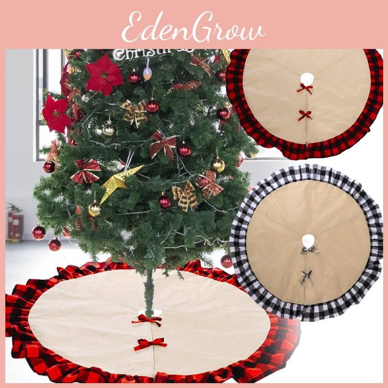 Crafted from high-quality burlap, this tree skirt features a striking black and white checkered border that perfectly complements the rich red and black checkered design at its center.The combination of these classic patterns creates a warm and inviting atmosphere, making it an ideal addition to any Christmas setting.Measuring a generous size, this tree skirt is perfect for accommodating trees of various heights and styles.