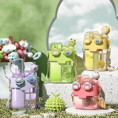 Drinking Bottle Large-Capacity Double-Bin Plastic Straw Cup Children Portable Carrying Water Bottle with High Beauty Cartoon Out