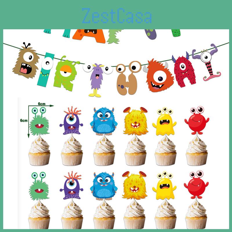 Colorful Cartoon Monster Et Alien Maggie Balloon Party Decor Banner Cake Topper For Birthday Supplies