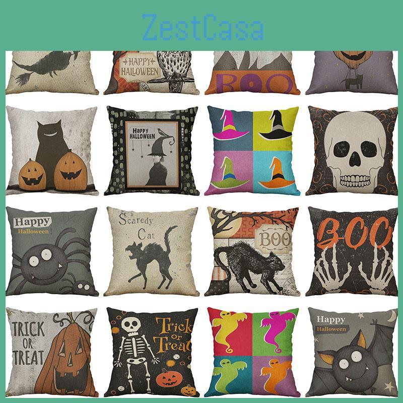 Vibrant Halloween Animal Print Cushion Cover Cotton Linen Pillow Case For Festive Home Decor