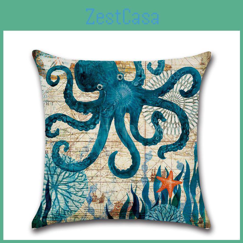 Retro Marine Collection Plush Peach Skin Throw Pillow Cover Cozy Polyester Fill Landscape Pattern