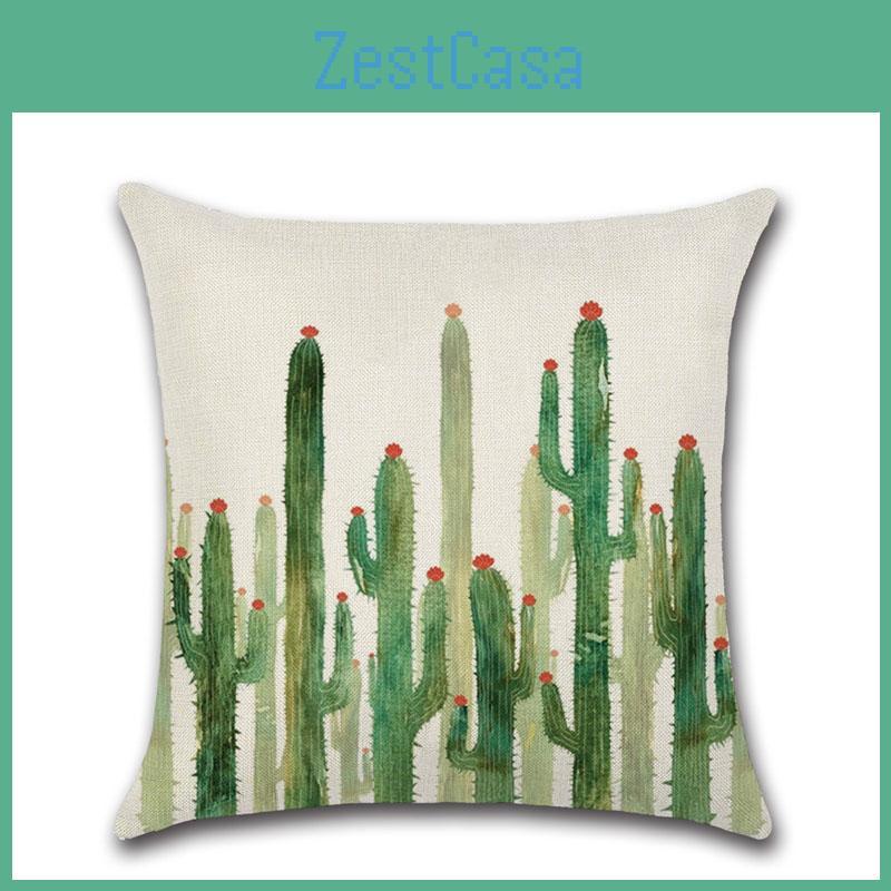 Tropical Plants Cactus Decorative Cushion Cover Cotton Linen Square Pillow Cover