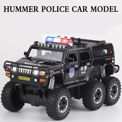 New 1:32 Six-wheel Police Car Off-road Vehicle Six-door Alloy Car Model Die-cast Metal Toy Modified Police Car Sound and Light Children's Toy Boy Gift