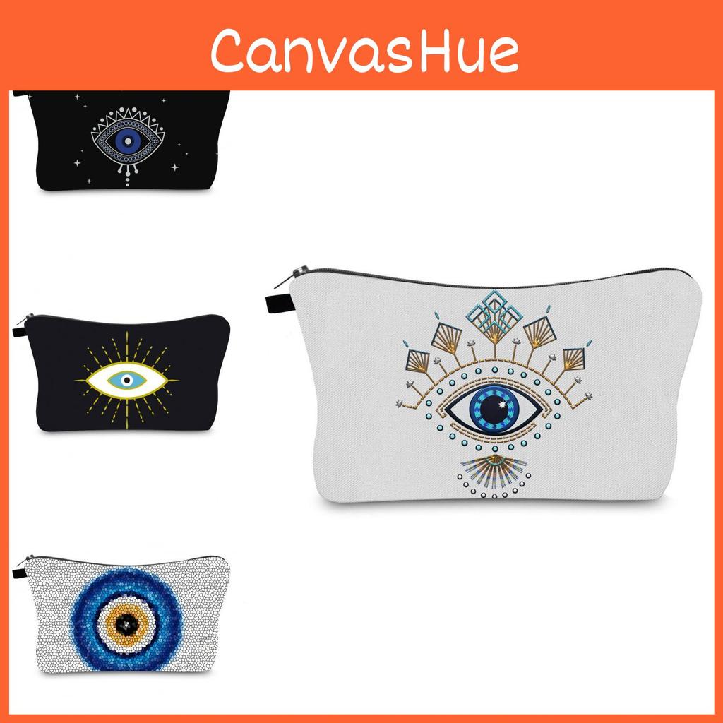 Evil Eye Print Makeup Bag Vintage Style Travel Storage Pouch Portable Hand Clutch Toiletry Bag