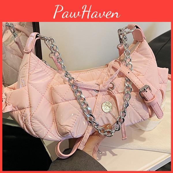 The soft-to-medium hardness of the bag allows for comfortable wear, while the single shoulder strap adds a touch of versatility - wear it as a crossbody or on your shoulder for a chic look.Elevate your style with the Rhombic Chain Saddle Bag and make a fashion statement wherever you go!