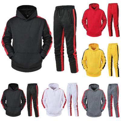 Men's Autumn Winter Tracksuit Men Set Fashion Striped Red Black Hooded Pullover Casual Sportwear Pants Sets