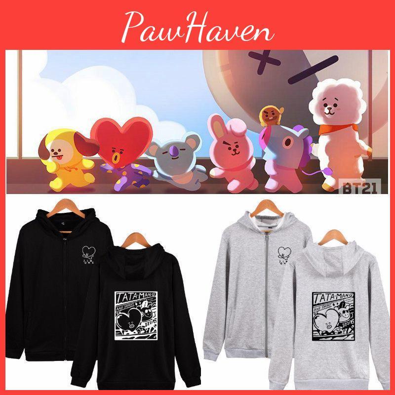 Zipper Sweatshirt Bts Bt21 Bangtan Boys Tata Casual Sweatershirt Kpop Hoodie