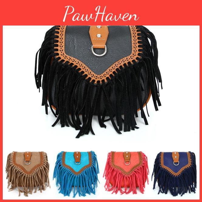 Elegant Bohemian Tassel Crossbody Bag For Women Stylish Vintage Pu Shoulder Bag
