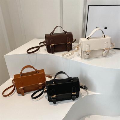 Fashionable Vintage Style Small Square Handbag For Women In Black White Red Brown