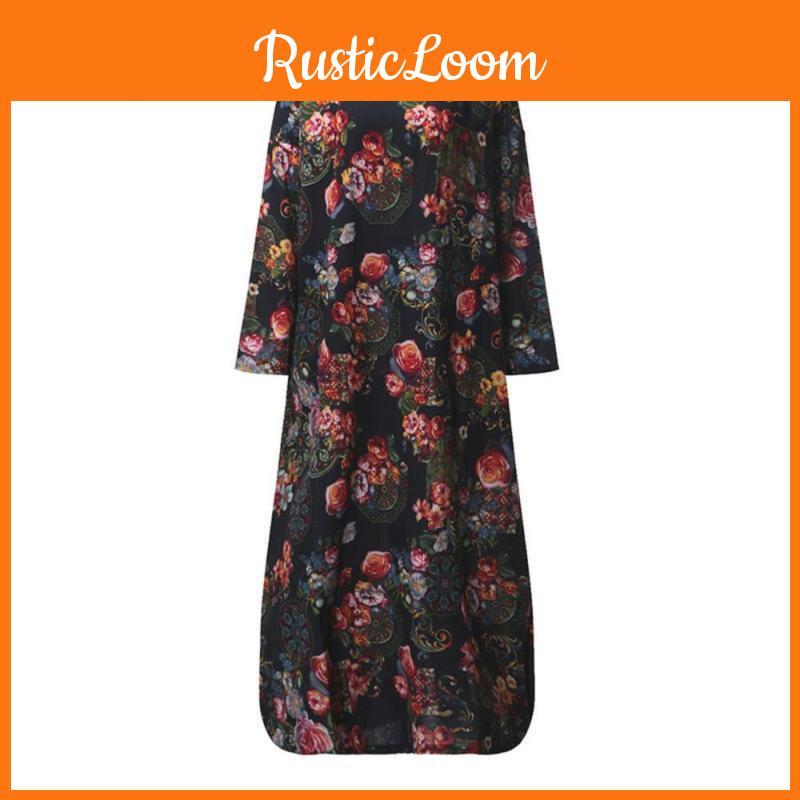 Women Vintage Casual Floral Printed Loose Dress Kaftan Long Maxi Shirt With Timeless Design