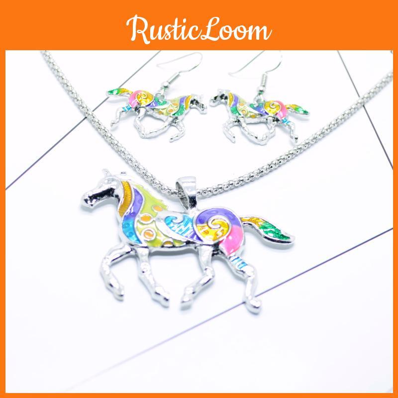Stylish Vintage Rainbow Pony Jewelry Set Featuring Bold Colorful Animal Motif