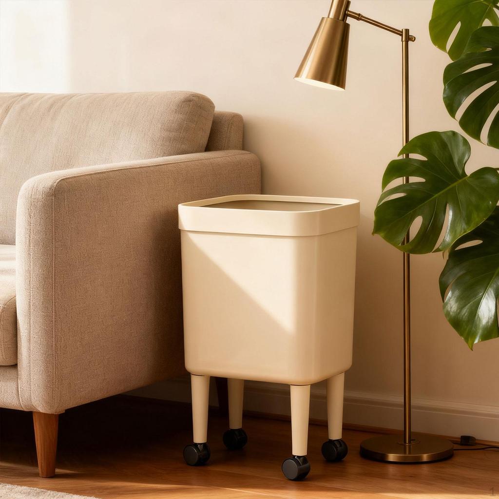 Trash Can with Wheels Household Sturdy Portable Convenient Waste Bin Wastebasket for Home Living