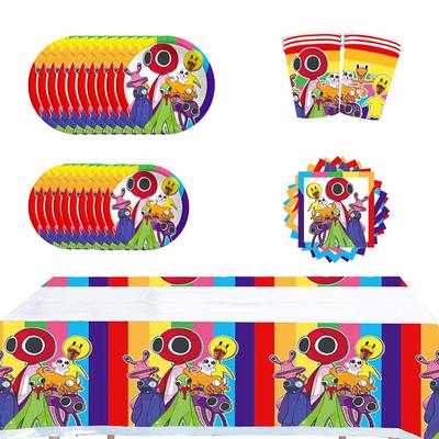 Rainbow Friends Party Tableware Set Includes Cups, Plates, Napkins, Tablecloth