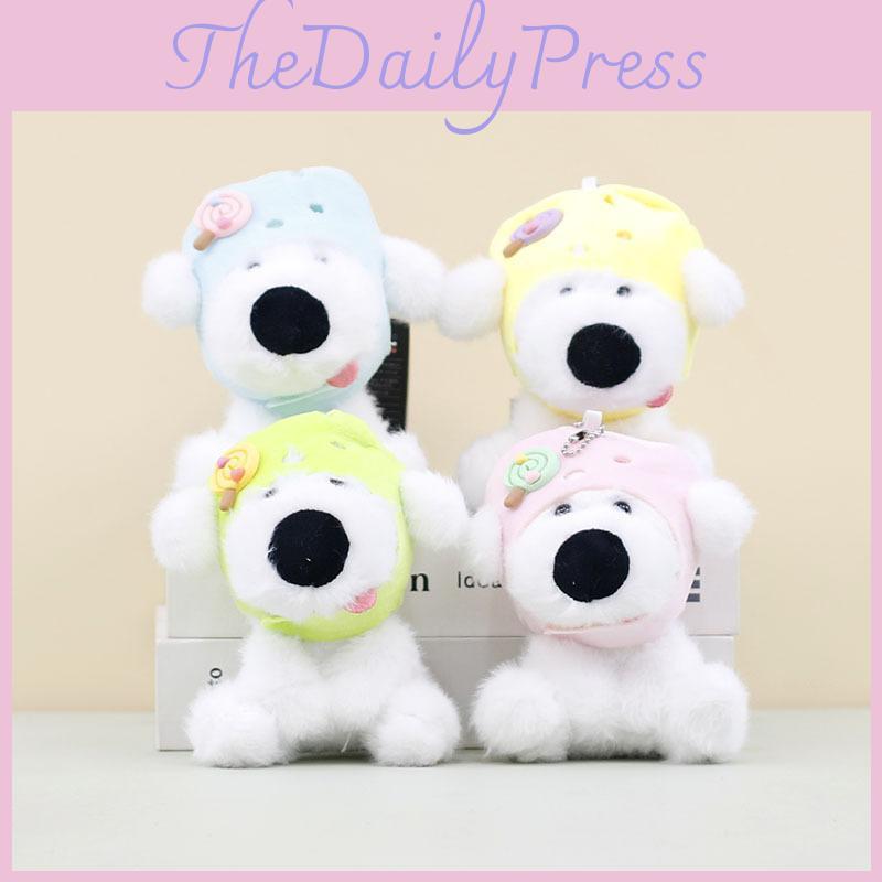 Lovable Plush Dog Keychain Cute Short-haired Stuffed Animal With Yellow Hat