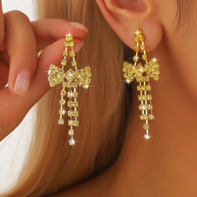 Elegant Fashion Bow Tassel Earrings Shiny Crystal Earrings Elegant Trend Earrings