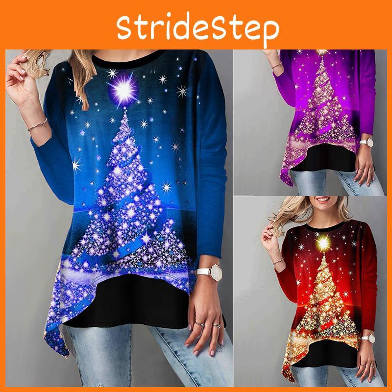 Stylish Women Christmas Tree Tops Long Sleeve Casual Xmas Pullover T Shirt Blouse