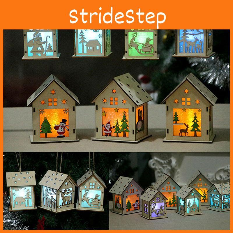 Elegant Led Light Wood House Ornament For Christmas Tree Hanging Decor