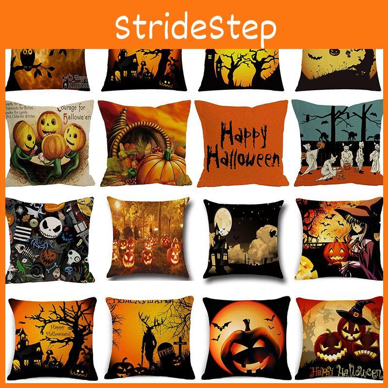 Cotton Linen Halloween Sofa Decor Cushion Cover With Stylish Pumpkin Design