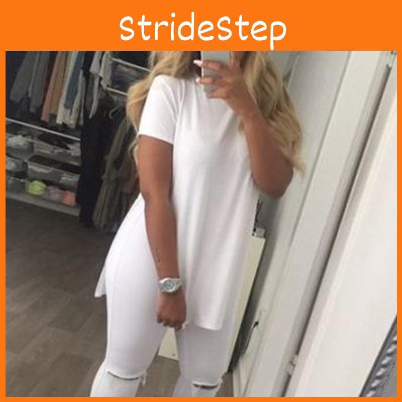 Women's Premium Quality Long T-shirt Round Neck Short Sleeve Split Tops Casual Dress