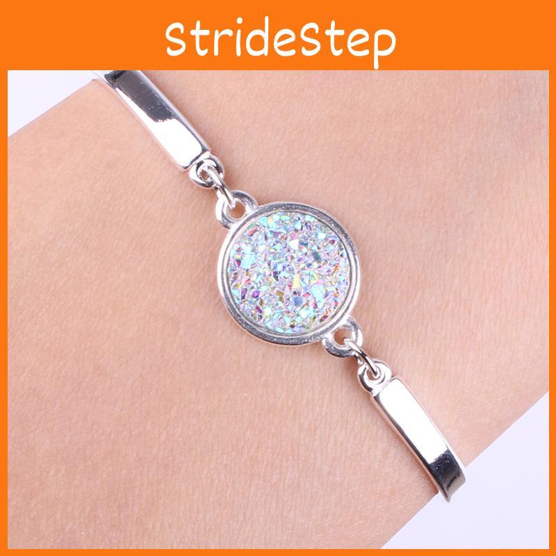 Elegant Druzy Vintage Natural Geode Stone Jewelry Rhinestone Pave Druse Bracelets