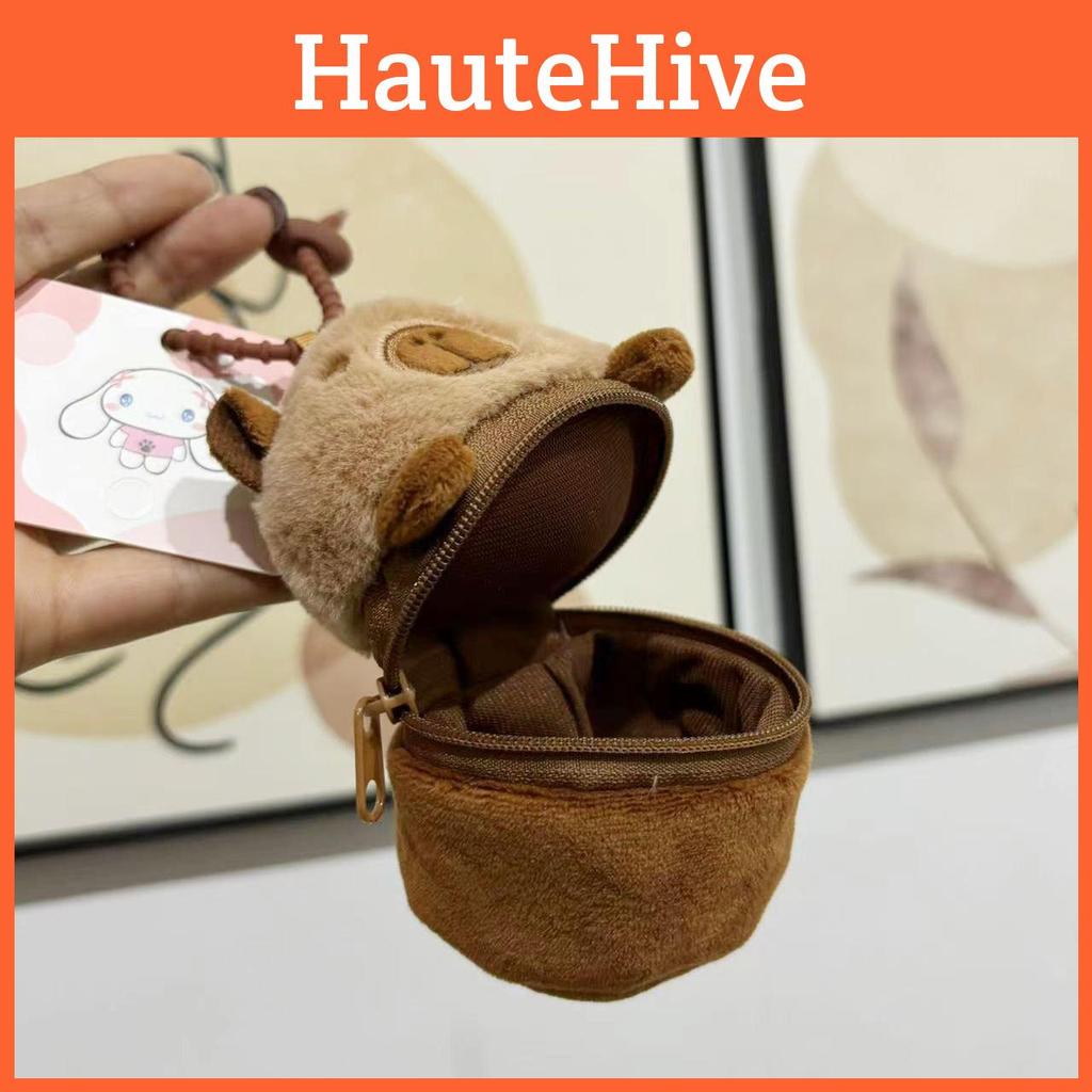 Adorable Panda And Capybara Earphone Case Keychain Plush With Coin Purse And Toy